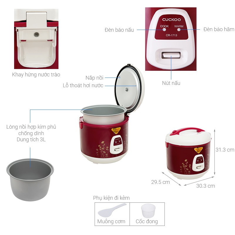 Giới thiệu Nồi Cơm Điện Cuckoo 3 lít 3.0L CR-1713 - Xuất Xứ Hàn Quốc - Hàng Chính Hãng (Bảo Hành Toàn Quốc 2 Năm)