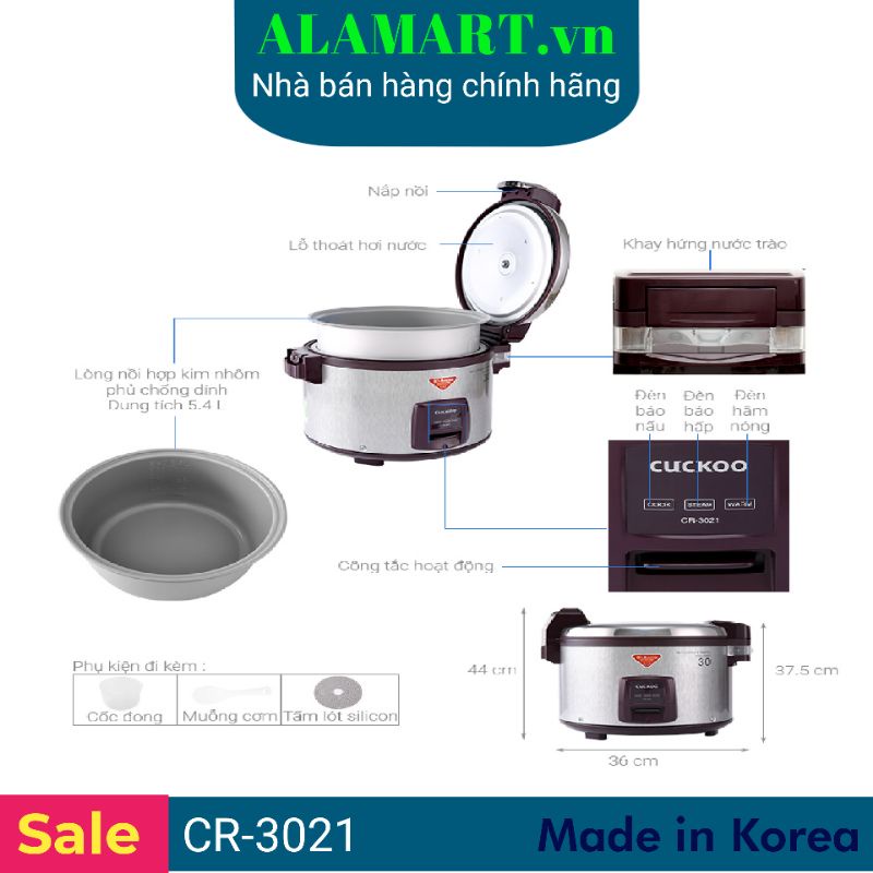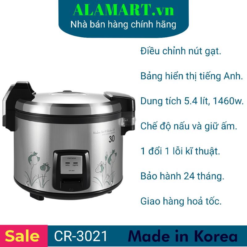 Thiết Bị Điện Gia Dụng > Đồ gia dụng nhà bếp > Nồi cơm điện || NỒI CƠM ĐIỆN CUCKOO 5.4 LÍT CR-3021 nhập khẩu Hàn Quốc dùng cho 10 - 20 người ăn nấu 3 kg gạoCòn hàng