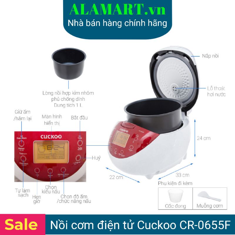 Thiết Bị Điện Gia Dụng > Đồ gia dụng nhà bếp > Nồi cơm điện || [Mã 273ELHA100K0 hoàn 7% đơn 500K] Nồi cơm điện Cuckoo CR-0655F (1.08L) dùng cho 2-4 người ăn nấu 0.5kg gạoCòn hàng