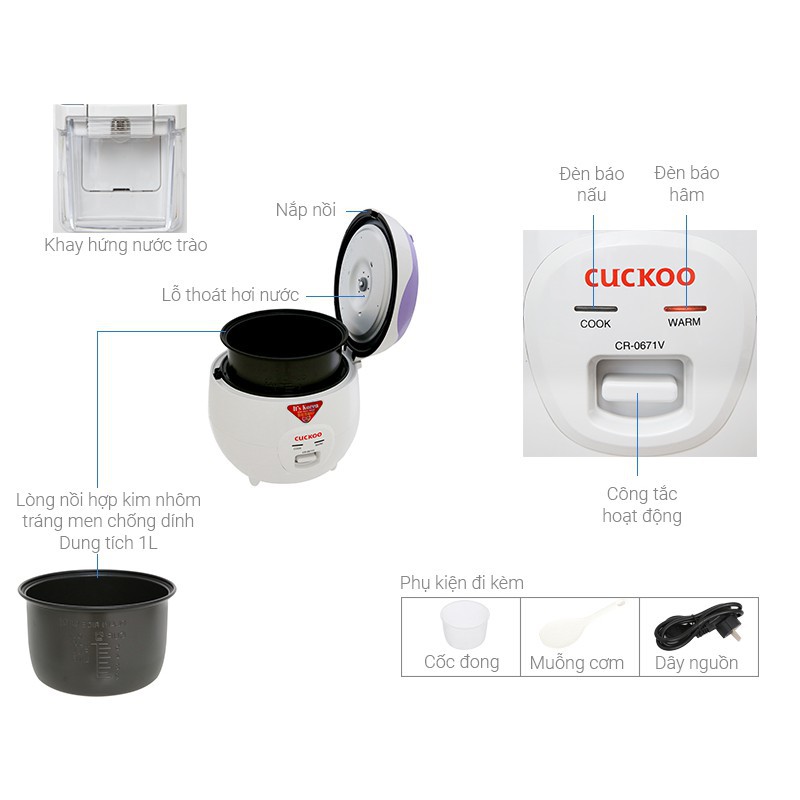 NỒI CƠM ĐIỆN CUCKOO CR-0671V-1.0 LÍT- HÀNG CHÍNH HÃNGĐặc điểm sản phẩm