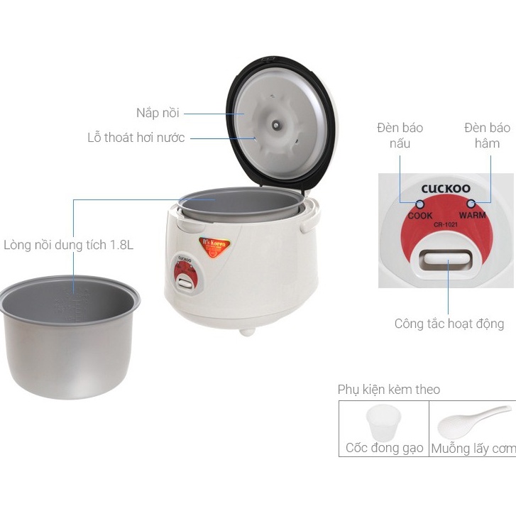 Giới thiệu [Mã ELHADEV giảm 4% đơn 300K] Nồi cơm điện Cuckoo CR- 1021, 1.8L (Trắng). Hàng nhập khẩu