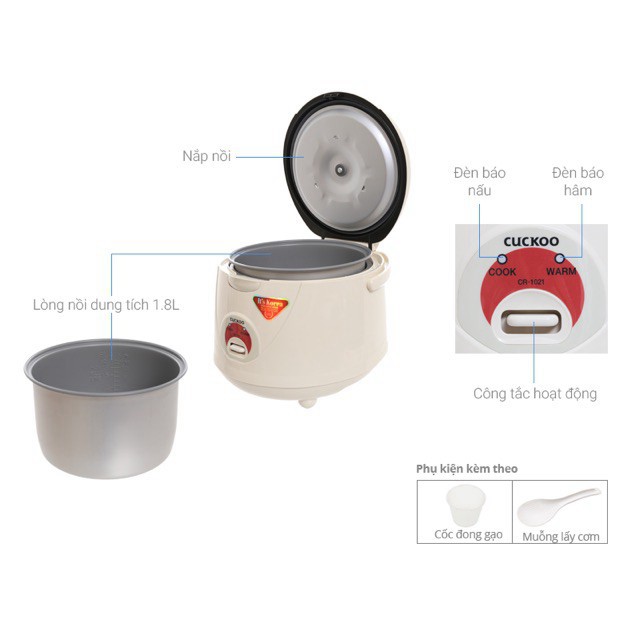 🎉Nồi cơm nắp gài Cuckoo CR-1021 đến từ thương hiệu gia dụng nổi tiếng hàng đầu Hàn Quốc, mẫu mã đơn giản, hiện đại, nấu cơm thơm ngon, tiện dụng.
