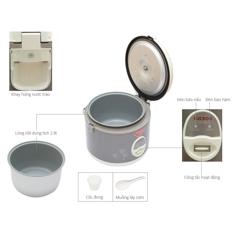 Thiết Bị Điện Gia Dụng > Đồ gia dụng nhà bếp > Nồi cơm điện || [Mã 273ELHA100K0 hoàn 7% đơn 500K] Nồi Cơm Điện Cuckoo CR-1032 - 2 LítCòn hàng