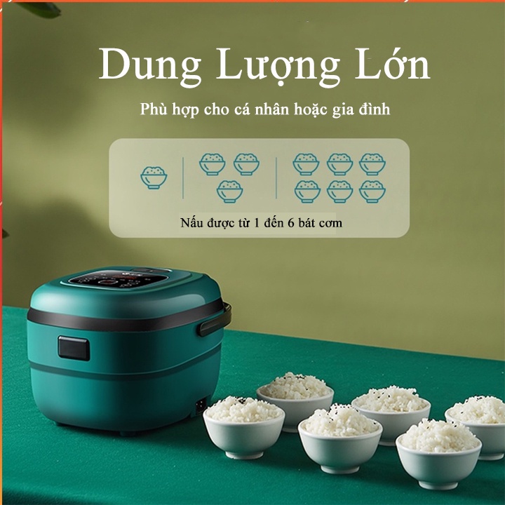 🍀 Sản phẩm được thiết kế gọn nhẹ, tinh giản, dễ dàng sử dụng, là sự lựa chọn phù hợp nhất cho mọi gia đình, sinh viên thuê trọ, dân văn phòng. Hơn nữa, nồi cơm điện tử mini thông minh lại cực kỳ tiện lợi khi có đến 8 chức năng chỉ trong 1 chiếc nồi cơm.