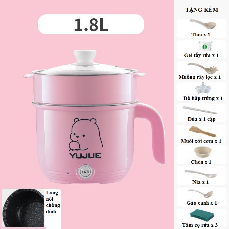 Nồi Cơm Điện Đa Năng Cao Cấp, Nồi Chiên Chống Dính, Ca Nấu Mì Tiên Ích 1.8L Hình Gấu CuteĐặc điểm sản phẩm: