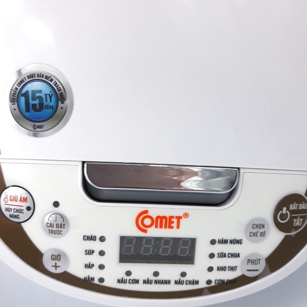 - Nồi cơm điện Comet này được tích hợp nhiều chức năng tiện ích. Không những sản phẩm nấu cơm chín ngon mà nó còn có thể nấu cháo, kho thịt, nấu cơm cháy, làm sữa chua, hấp/hầm.
