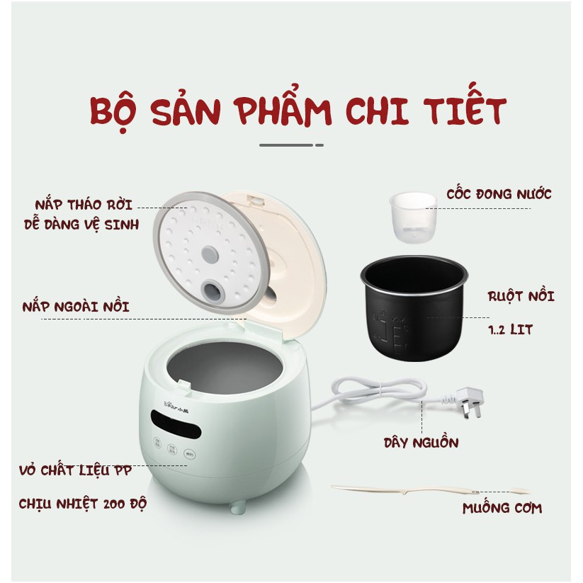 * Nấu được 3-4 chén cơm, thích hợp cho gia đình 1-2 người. Các bạn ở kí túc xá , trung cư, văn phòng....