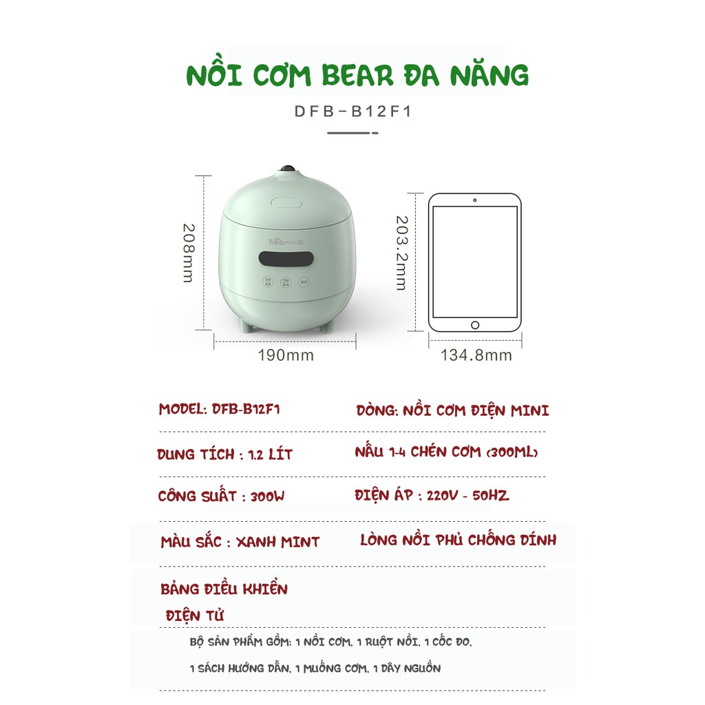 ❌❌ NỒI CƠM ĐIỆN MINI ĐA NĂNG BEAR 1.2L ❌❌✔️Với thiết kế hiện đại, màu sắc tinh tế trang nhã,NỒI ĐIỆN ĐA NĂNG BEAR giúp mẹ chế biến được tất cả các món ăn cho bé, cho cả gia đình một cách an toàn, nhanh chóng và tiết kiệm điện .