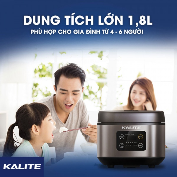 Nồi có dung tích lớn lên tới 1,8L phù hợp với những gia đình từ 4- 6 người