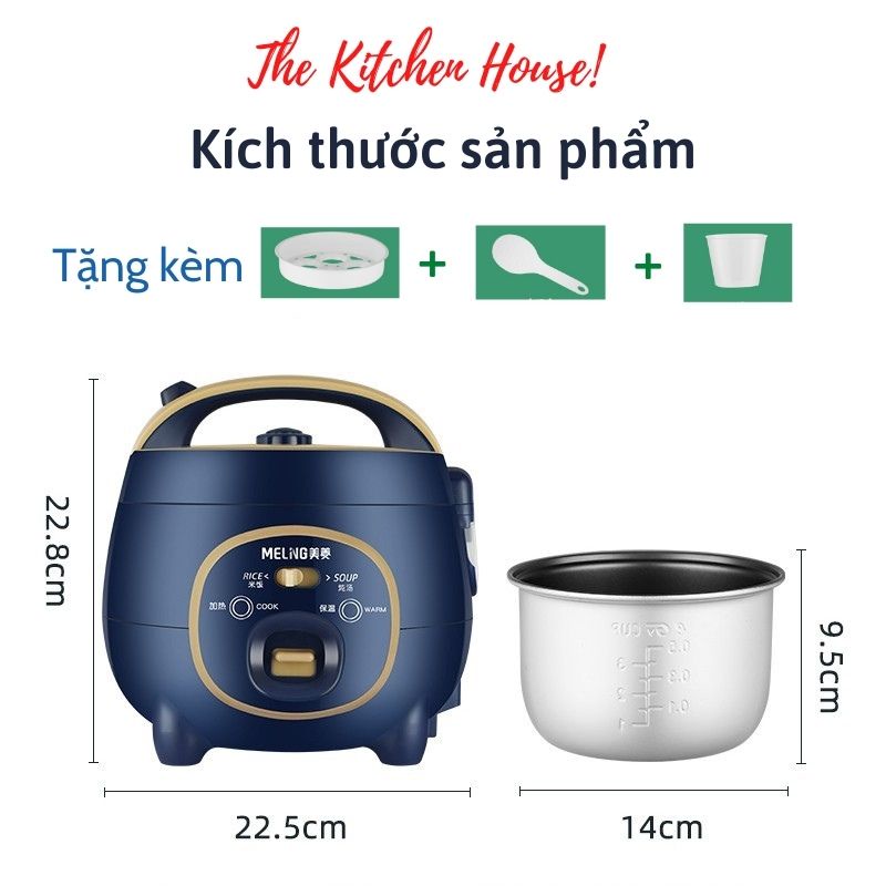 Nồi cơm điện đa năng mini MELING 1.2L Nấu cháo, súp, hâm nóng đồ ăn cho 2 đến 3 người ăn The Kitchen House