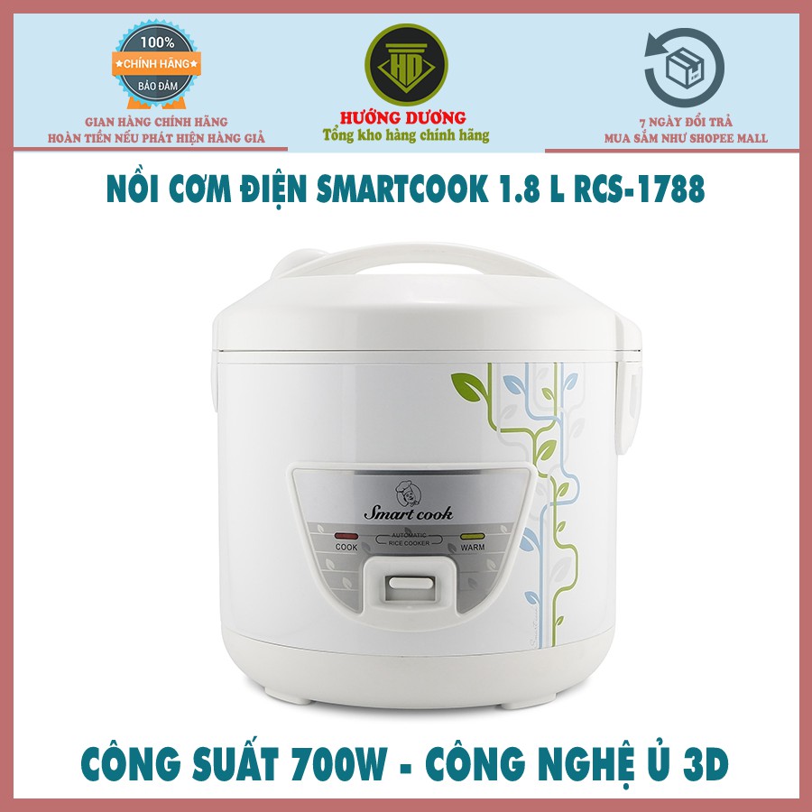 Nồi cơm điện dung tích 1.8L công suất 700W Smartcook RCS-1788 Hàng Chính Hãng