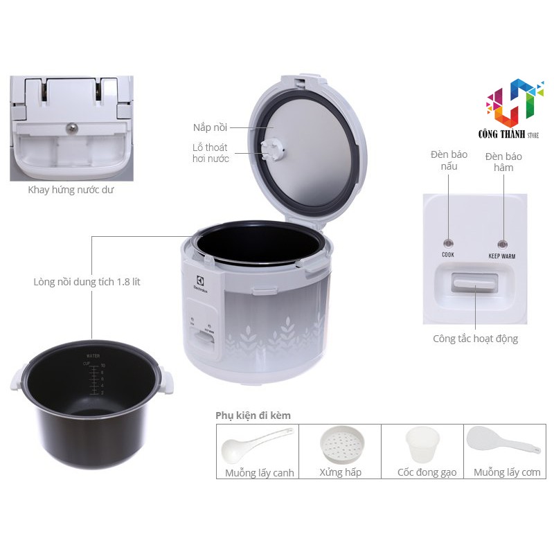 THÔNG TIN CHI TIẾT:Tên sản phẩm: Nồi cơm điện Electrolux Cơ 1.8 lít ERC3305