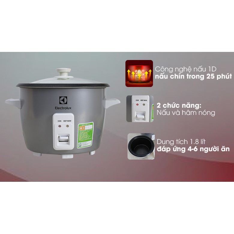 [Mã ELHADEV giảm 4% đơn 300K] Nồi cơm điện Electrolux 1.8 lít ERC1800