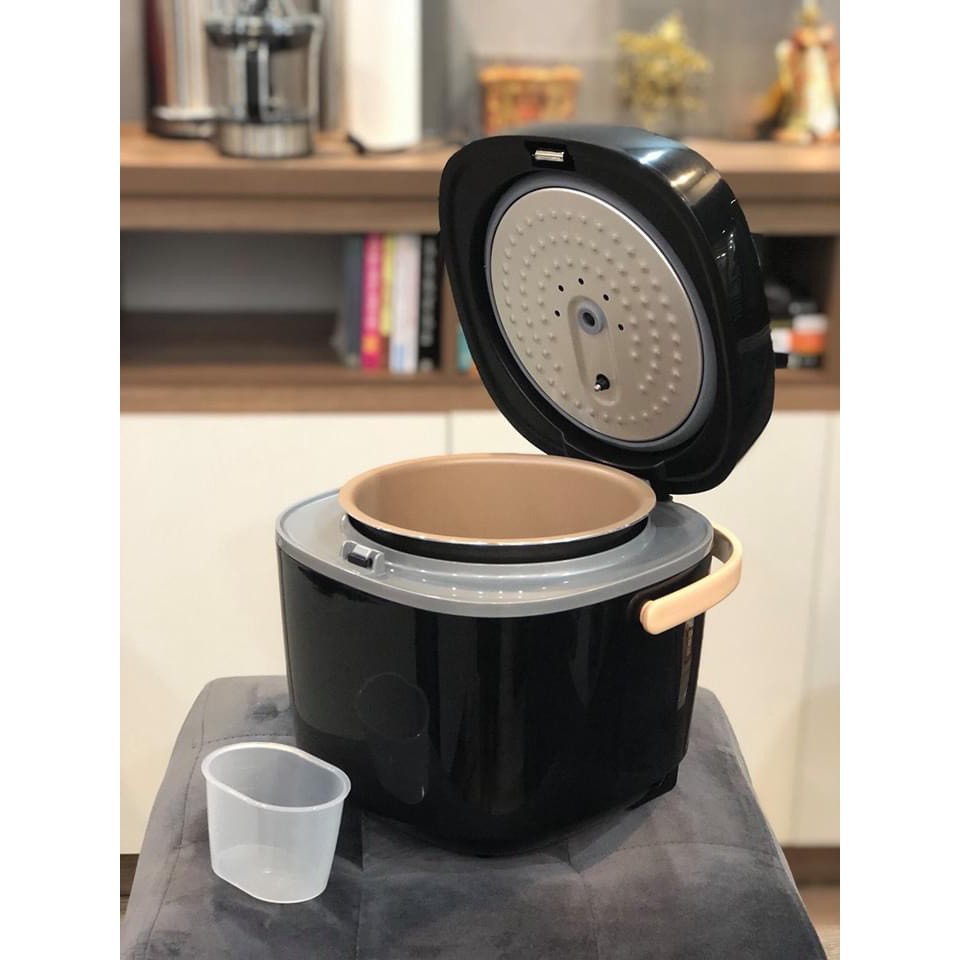 Lòng nồi bằng nhôm hợp kim được phủ lớp chống dính, có vạch định mức giúp việc đong gạo được dễ dàng
