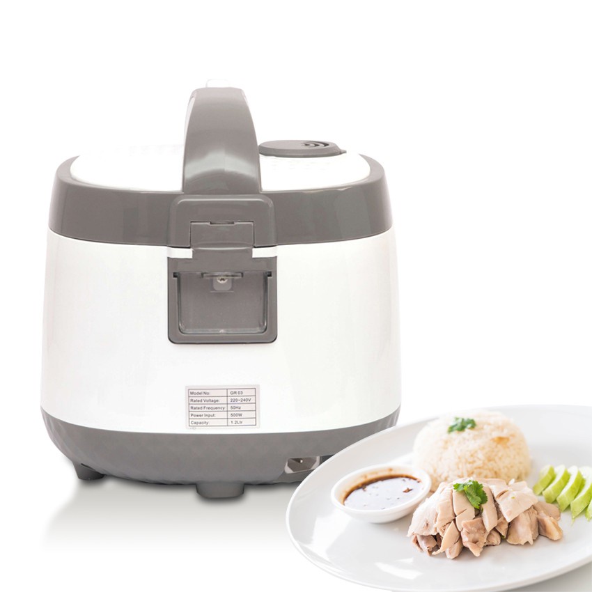 Nồi Cơm Điện Galuz GR03 dung tích 1.2L , công suất 500W, phù hợp gia đình nhỏ từ 1-4 người. Với công nghệ nhiệt độ thông minh giúp nấu cơm nhanh và ngon hơn. Thiết kế sạng trọng với tông màu trắng xám, tiện dụng với nắp gài tự động quai cầm tích hợp ngay trên thân nắp.