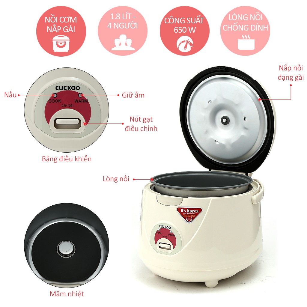 MÔ TẢ SẢN PHẨM-Giới thiệu sản phẩm Nồi cơm điện Hàn Quốc Cuckoo CR- 1021 1.8Lít