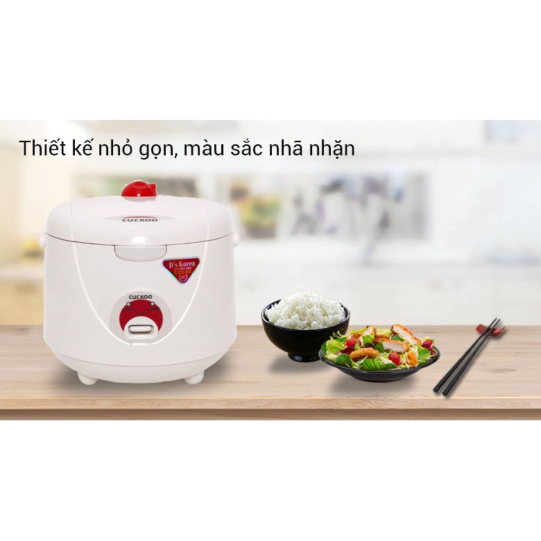 Nồi cơm điện Hàn Quốc Cuckoo CR- 1021 1.8Lít nắp gài dung tích 1.8L, thích hợp cho 4 -6 người dùng. Lòng nồi bằng hợp kim nhôm phủ chống dính, bền đẹp, an toàn, chống trầy, dễ vệ sinh.
