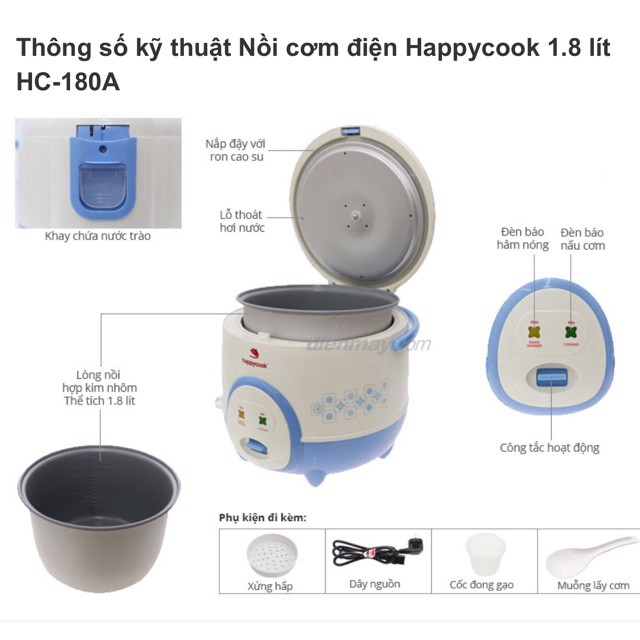 Nồi cơm điện Happycook sản xuất tại Indonesia, thiết kế xinh xắn và đẹp mắt.