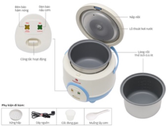 Thông số kỹ thuật Nồi cơm điện Happycook 0.6 lít HC-60Đặc điểm sản phẩm