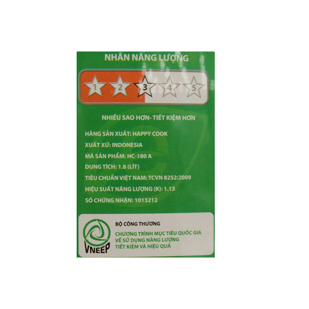 [Mã ELHADEV giảm 4% đơn 300K] Nồi Cơm Điện Happycook 1.8 lít HC-180A
