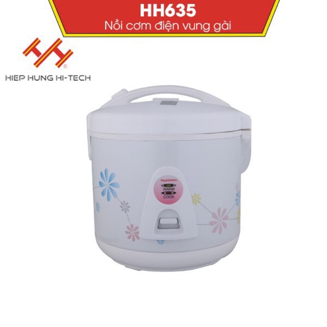 Nồi cơm điện Hiệp Hưng HH635 có dung tích vừa phải, sử dụng từ 2-3 người. Sản phẩm có giá rẻ thích hợp với sinh viên. Lòng nồi bằng nhôm có phủ lớp chống dính giúp cơm không bám dính khi nấu.