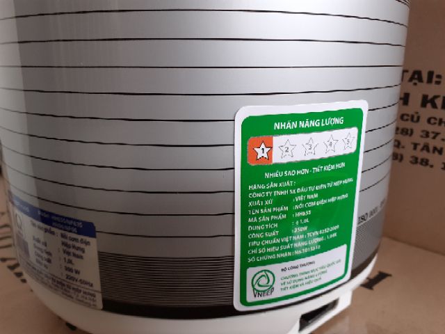✔ Tiết kiệm điện năng , nồi cơm điện Hiệp Hưng được cấp giấy chứng nhận tiết kiệm năng lượng của Bộ Công Thương