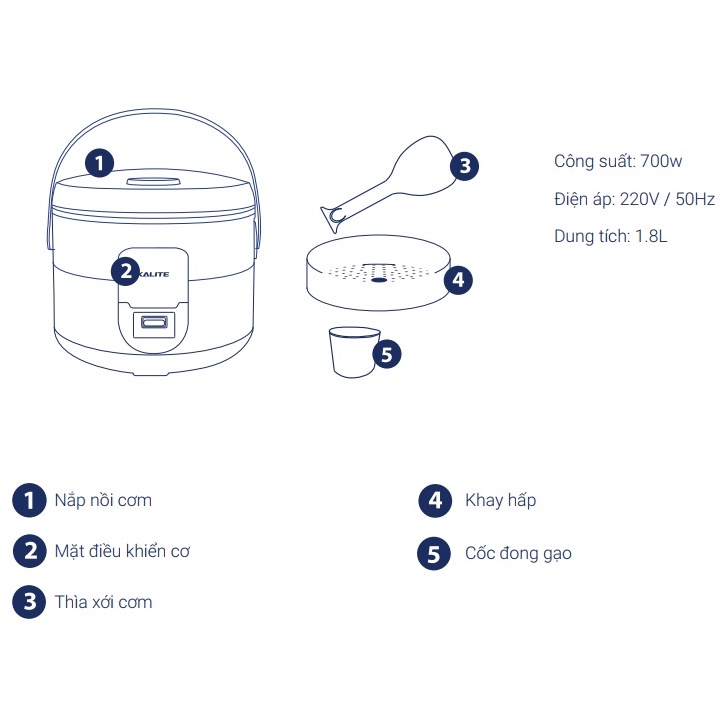 Phụ Kiện Đi Kèm: Thìa Xới Cơm (1), Khay Hấp (1), Cốc Đong Gạo (1)