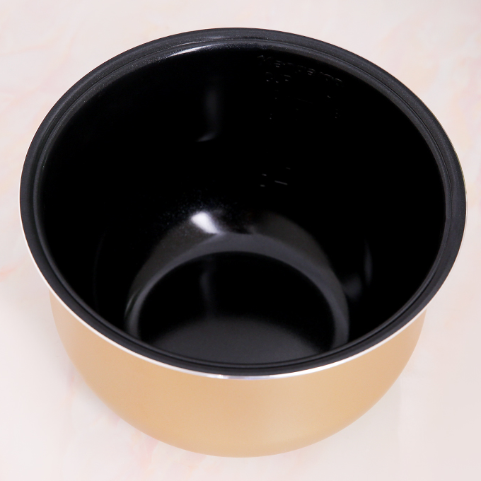 Bên ngoài lòng nồi mạ màu vàng sang trọng bên ngoài bền bỉ, cho lòng nồi đẹp mắt hơn, dùng bền, nấu cơm ngon, chùi rửa đơn giản.