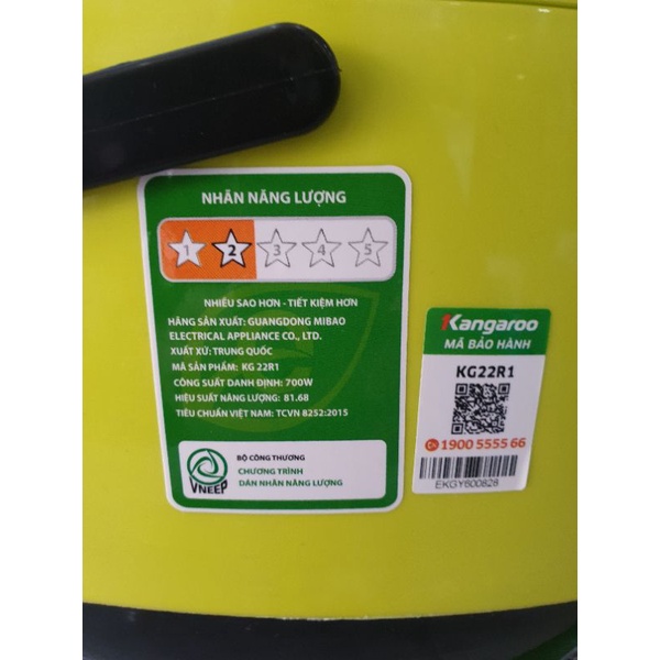 Thiết Bị Điện Gia Dụng > Đồ gia dụng nhà bếp > Nồi cơm điện || NỒI CƠM ĐIỆN KANGAROO - KG22R1/2,2LCòn hàng