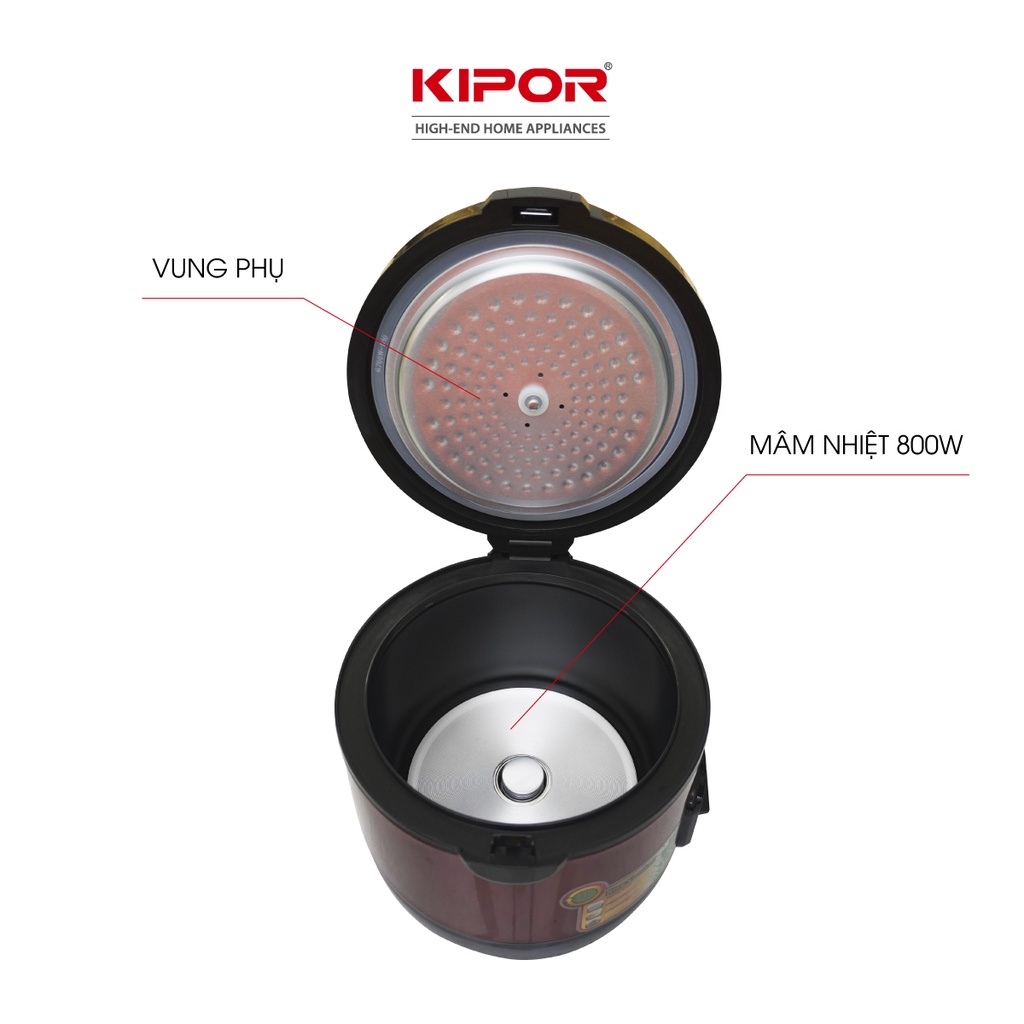 Nồi cơm điện KIPOR KP-N6518 - 1.8L - Nồi cơ dung tích lớn, chống dính TEFLON 3mm 1Kg - Bảo hành tại nhà 12 tháng