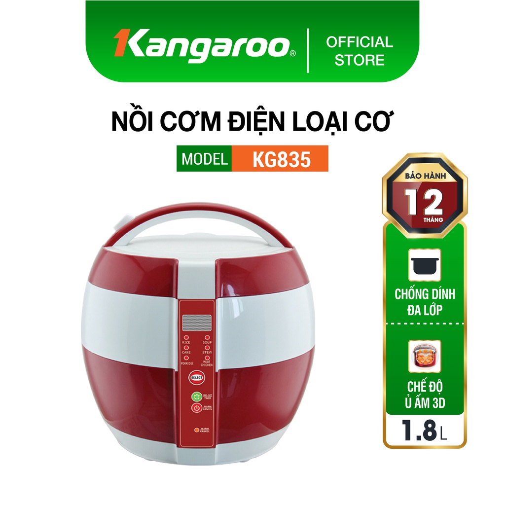 [Mã ELHADEV giảm 4% đơn 300K] Nồi cơm điện loại cơ 1,8L Kangaroo KG835