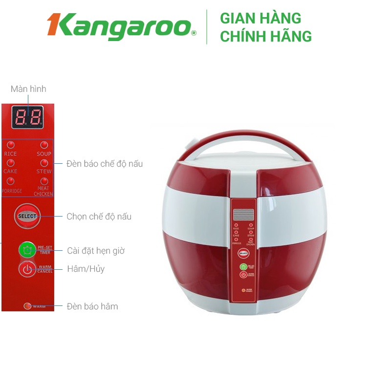 Thương hiệu: Kangaroo | Xem thêm các sản phẩm Nồi cơm điện của KangarooMô tả ngắn
