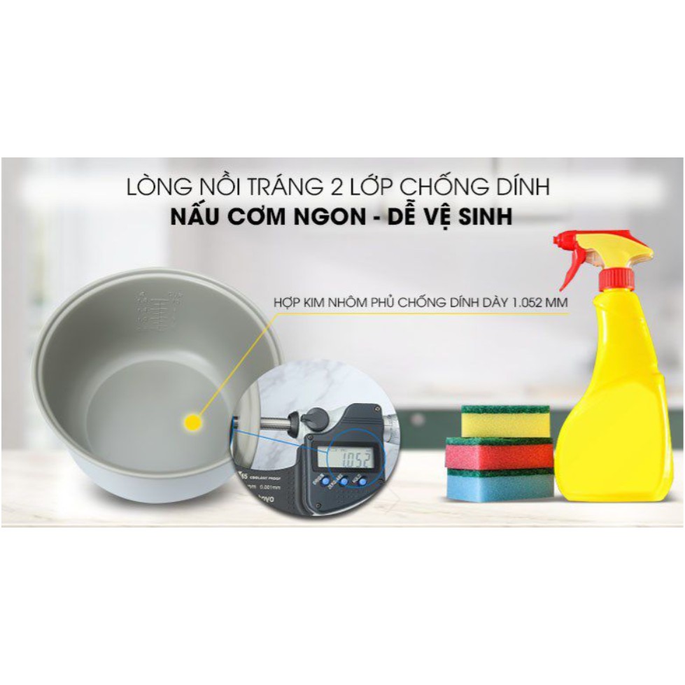 Lòng nồi cơm điện Kangaroo 2 lớp dày 1.052 mm bằng hợp kim nhôm được trang bị lớp chống dính đảm bảo cơm
