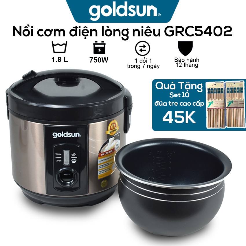 Nồi cơm điện lòng niêu Goldsun Việt Nam GRC5042 - Dung tích 1.8L, lòng nồi dày tới 1.6mm - Bảo hành 12 tháng chính hãng