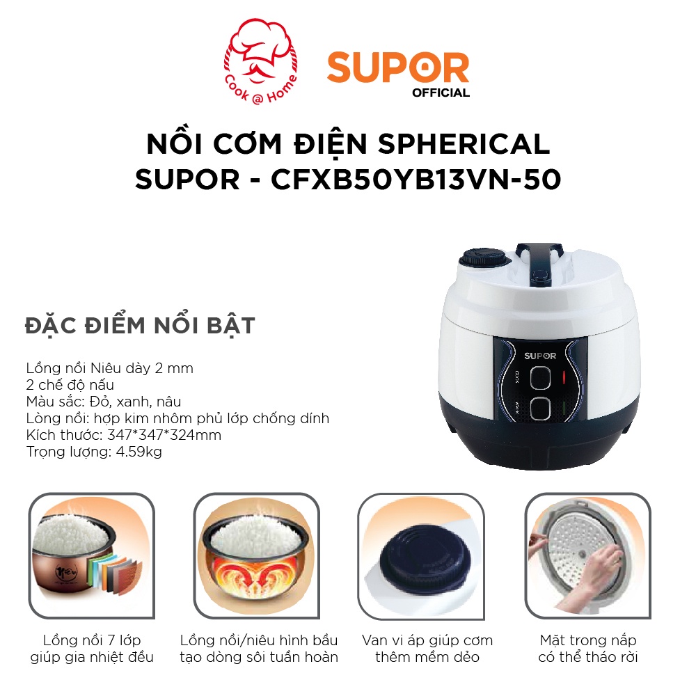 Nồi cơm điện Niêu Spherical Supor 50YB13VNThông tin kỹ thuật