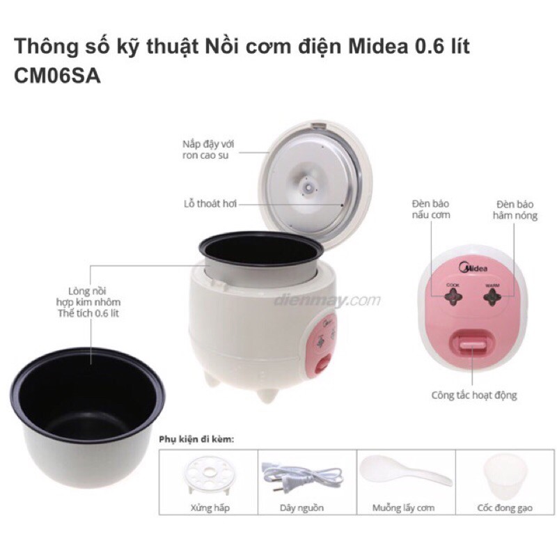 Nồi cơm điện Midea CM06SA 0.6 lít - Nồi cơm điện nhỏ gọn, thiết kế đẹp mắt