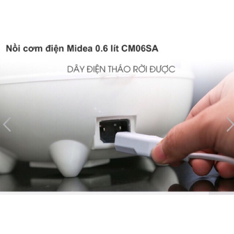 Nồi cơm điện Midea CM06SA dung tích 0.6 lít, thích hợp cho người độc thân, gia đình 2 người. Thiết kế nhỏ gọn, dung tích hợp lý sẽ giúp bạn tiết kiệm điện năng tiêu thụ cũng như làm gọn gàng không gian căn bếp.