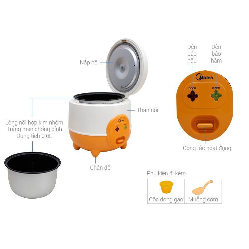 Giới thiệu Nồi Cơm Điện MIDEA 0.6L MR-CM06SD - Bảo hành 12 tháng