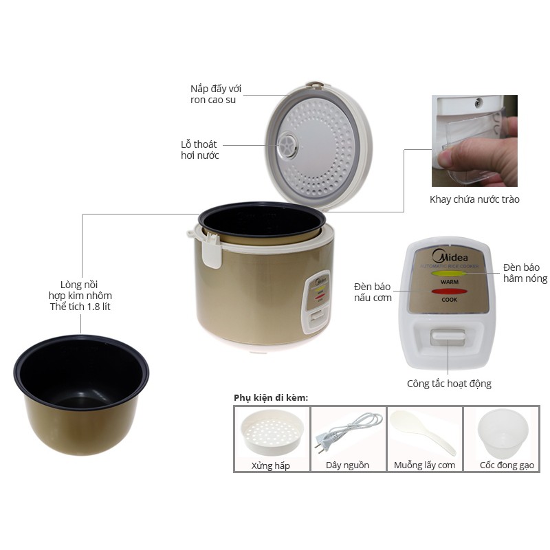 Thông số kỹ thuật Nồi cơm điện Midea MR-CM18SY 1.8 lít