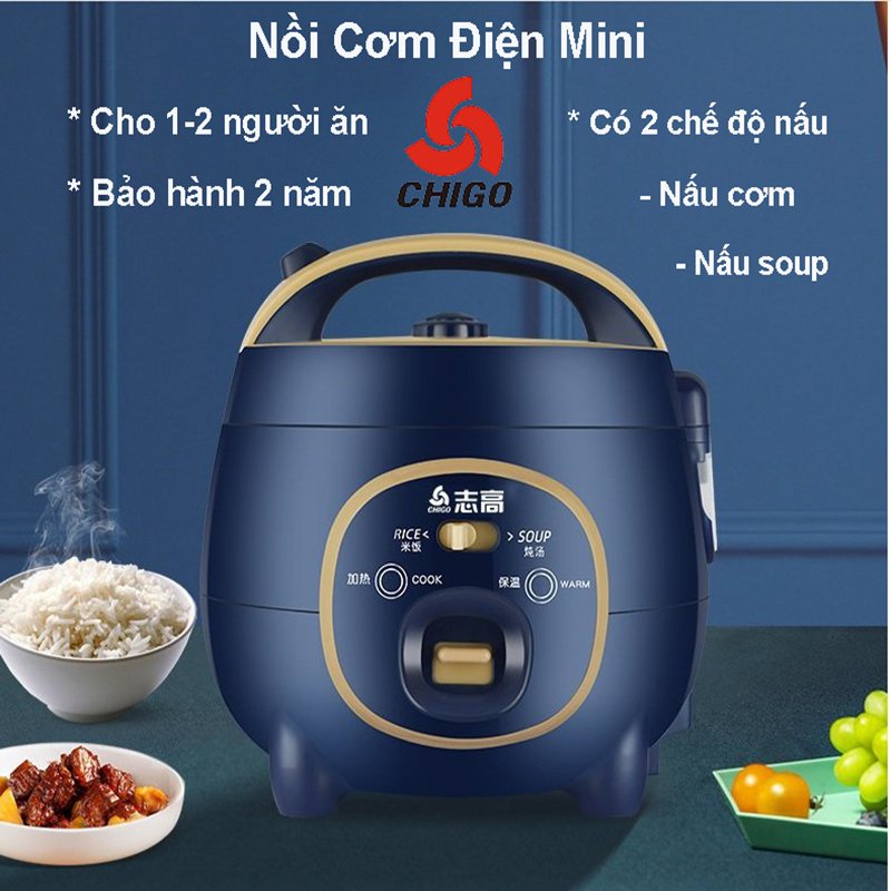 - Nồi cơm điện mini Chigo thích hợp cho người độc thân, gia đình 2 người. ăn ít cơm, sinh viên, ngại rửa cái nồi cơm điện bình thường to oạch.