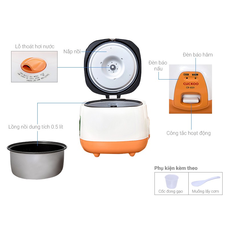 Giới thiệu Nồi Cơm Điện Mini Cuckoo 0.5 Lít 0.5L CR-0331 - Xuất Xứ Hàn Quốc - Hàng Chính Hãng (Bảo Hành Toàn Quốc 2 Năm)