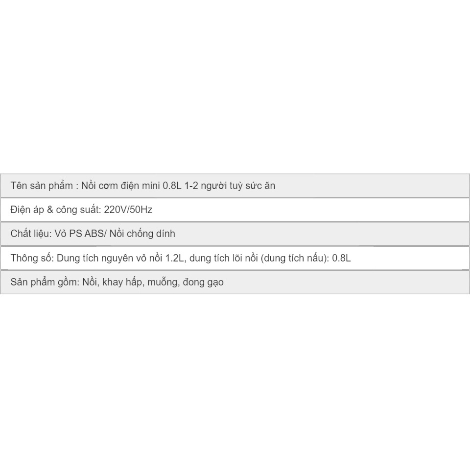 + Nồi Cơm Điện Mini Đa Năng có dung tích 1.2L ( cả nồi, nòng nồi 0.8l) nhỏ gọn tiện ích cho các gia đình ít người, ăn ít cơm. Đặc biệt cho gia đình có bé ở độ tuổi ăn dặm. Nấu cháo, hầm thức ăn. Điểm bonus nữa là có thể luộc trứng, khoai, hầm canh, nấu soup rất tiện lợi.