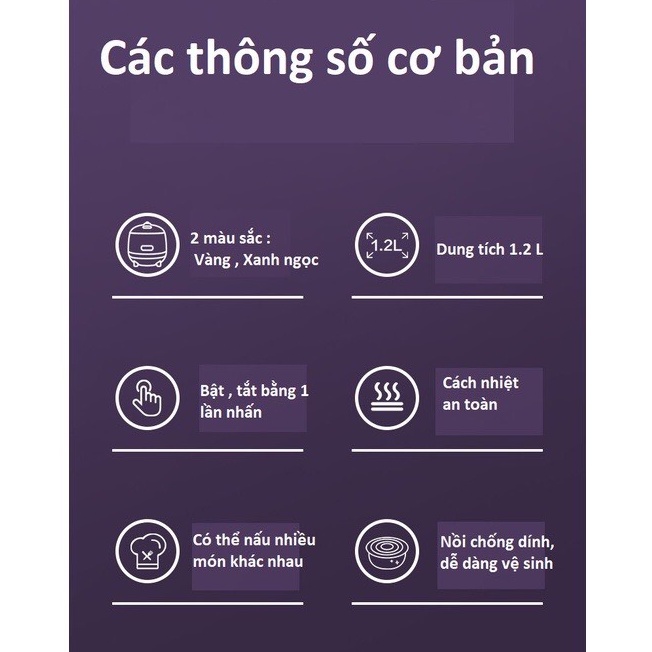 ✔Dung tích lòng nồi 1.2L có thể nấu được cho 1-3 người ăn