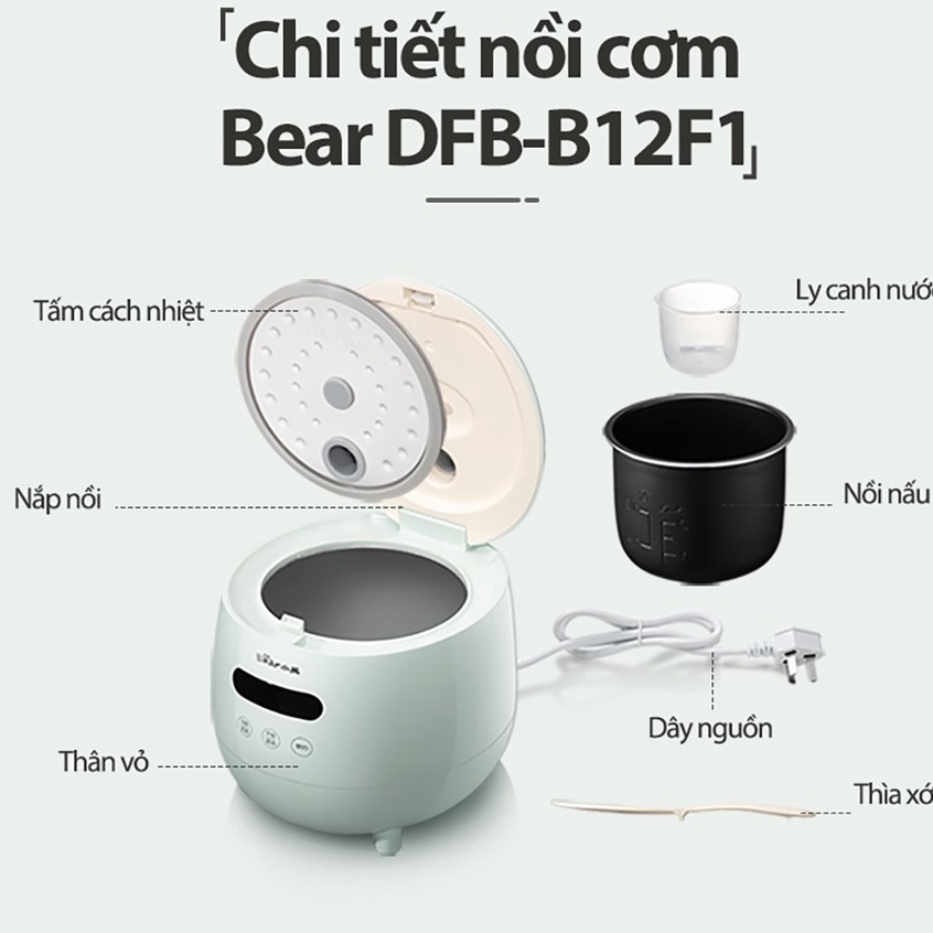 Nồi cơm điện mini đa năng Bear DFB-B12F1 8 chức năng chính hãng ( bản Quốc Tế), bảo hành 18 tháng