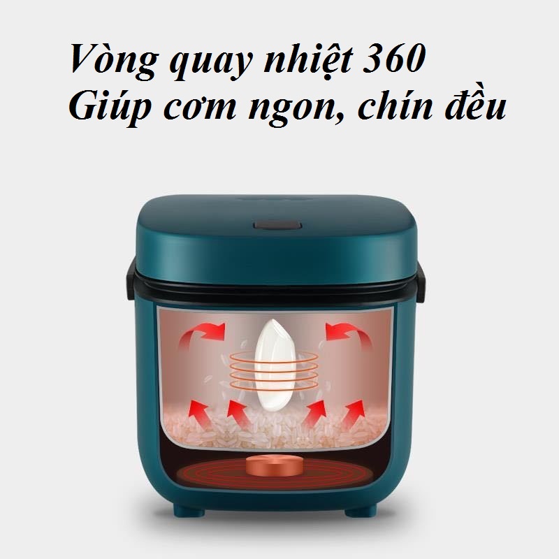 - Nồi Cơm Mini thiết kế 5 lớp, phủ lớp chống dính đá Ceramic: không sợ tróc, an toàn cho sức khỏe, thân thiện với môi trường.