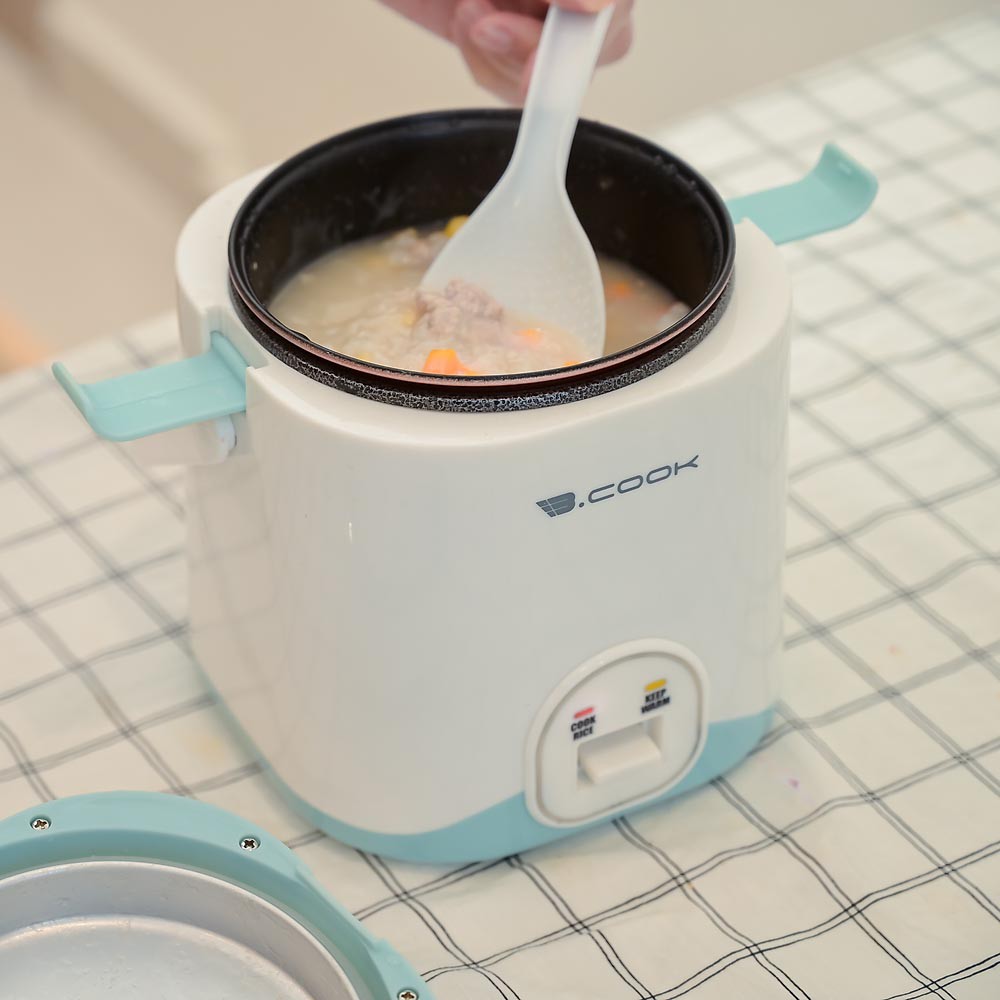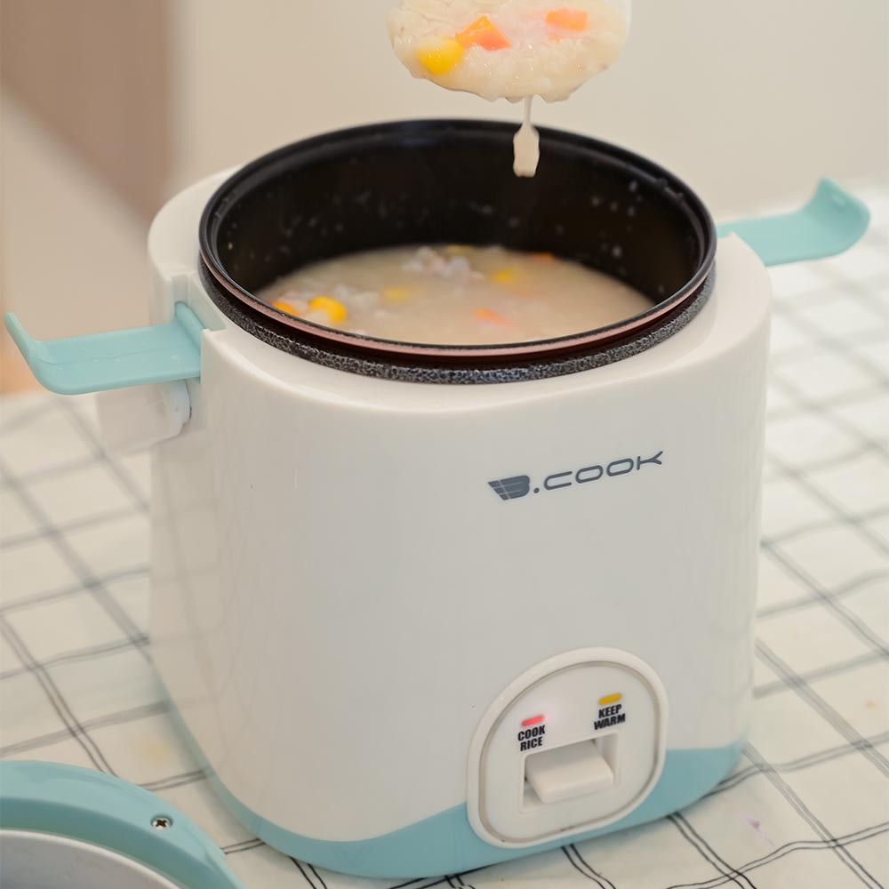 - Thiết kế nhỏ gọn: Nồi cơm điện mini Bcook được thiết kế nhỏ gọn, trang nhã với tông màu xanh - trắng, mang đến sự hiện đại cho không gian bếp. Với dung tích 1.2 lít, nồi thích hợp cho sinh viên ở trợ, người sống độc thân hoặc vợ chồng mới cưới.
