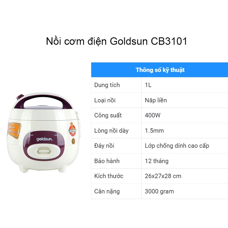 Giới thiệu Nồi cơm điện mini dung tích 1L, Nồi cơm điện nhỏ Goldsun CB3101 - Bảo hành chính hãng 12 tháng