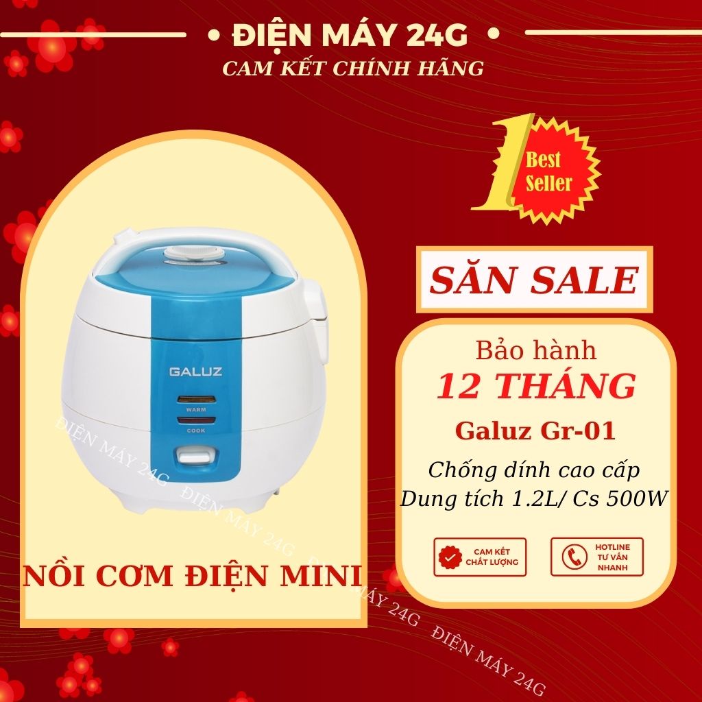 ✔ ĐẶC ĐIỂM NỔI BẬT: Nồi cơm điện mini Galuz Gr-01 dung tích 1.2 lít công suất 500w