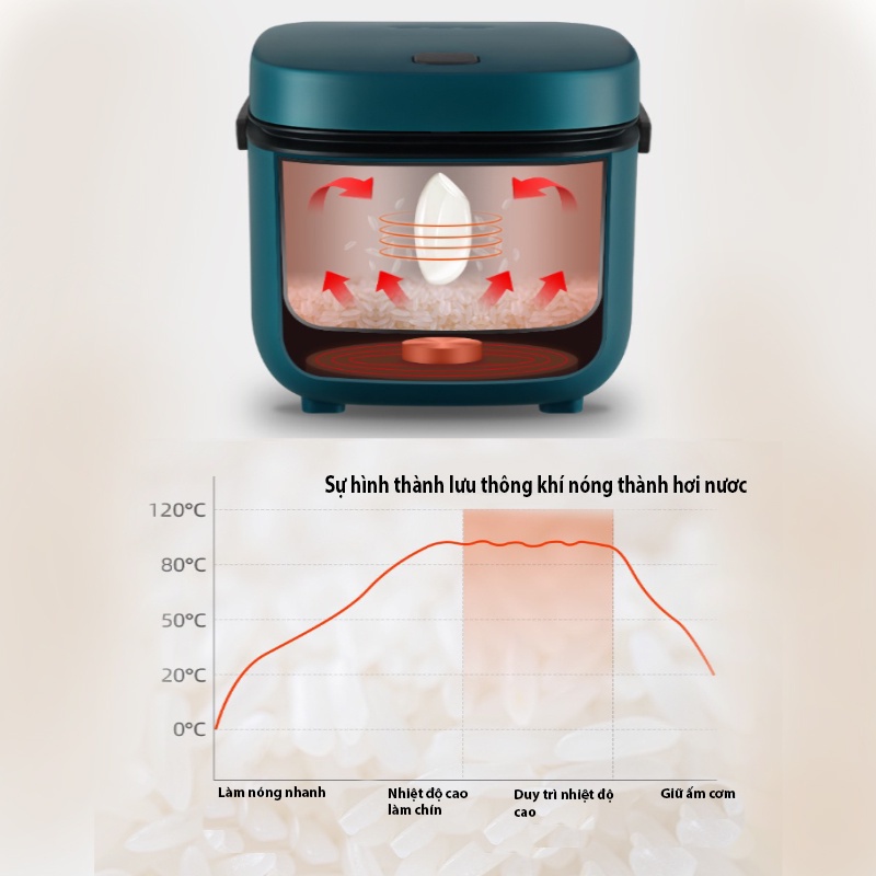 📍Nồi Cơm Mini thiết kế 5 lớp, phủ lớp chống dính đá Ceramic: không sợ tróc, an toàn cho sức khỏe, thân thiện với môi trường.