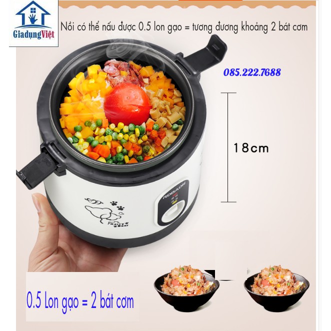 - Sản phẩm có dung tích: 0.5 L. Nấu được khoảng nửa lon gạo = Tương đương thành phẩm 2 bát cơm